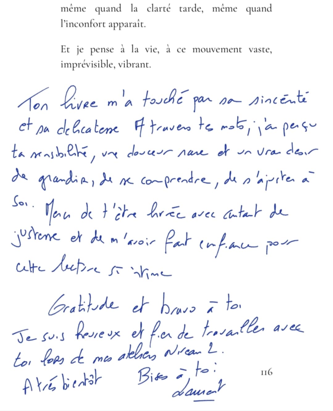 Je te remercie. Grâce à toi, j’ai construit, j’ai persévéré. Tu m’as donné une direction quand tout semblait flou. Tu m’as aidée à m’incarner, à créer, à contribuer, à ne pas rester figée dans l’indétermination.